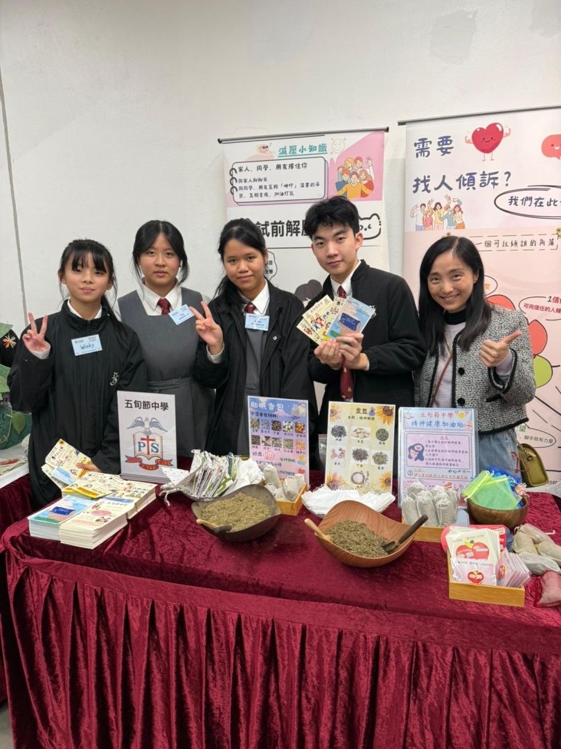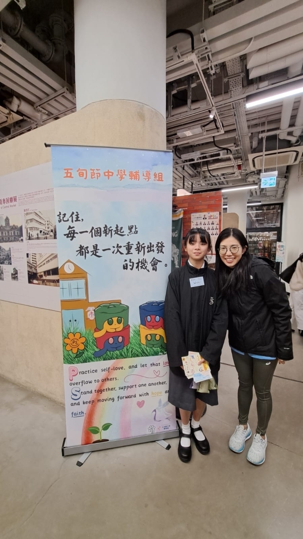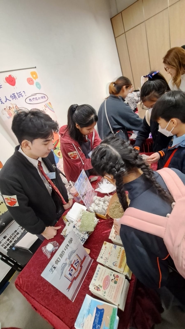 本校精神健康大使到中環街市進行活動攤位,除了讓參加者製作助眠香包,還就著共感同行的主題,設計並派發卡片給活動出席者。