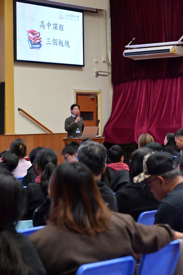 本校舉行中三級家長晚會,目的讓家長和學生瞭解新高中學制及學習科目,以便各家長協助子女作出最佳選擇,增強家校合作。