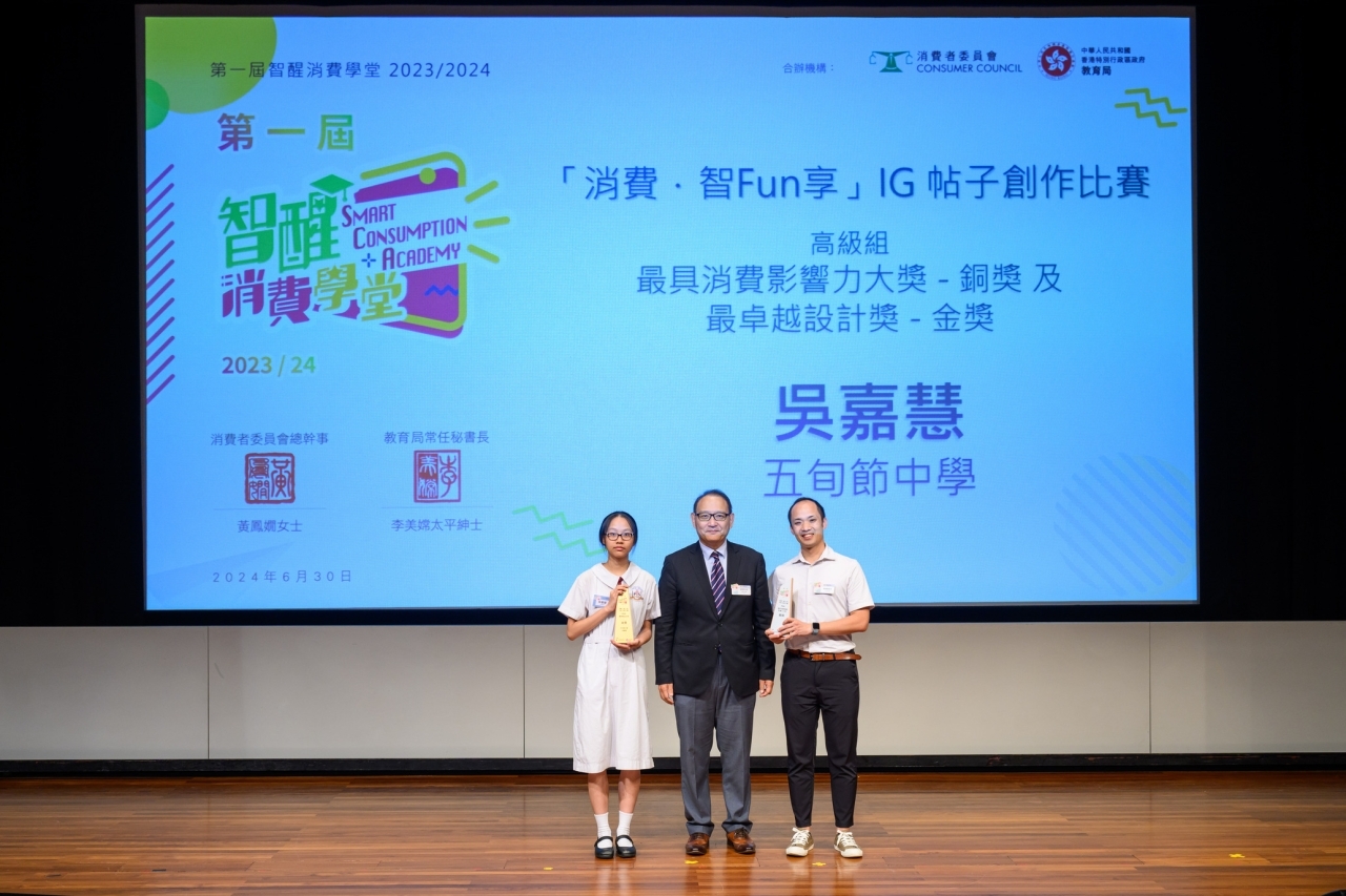 消費者委員會主辦的第一屆智醒消費學堂,本校中六級同學奪取以下兩個獎項,恭喜得獎同學。